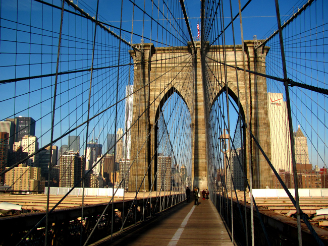 Brooklyn Bridge, New York City- Note suspension and cable-stayed features