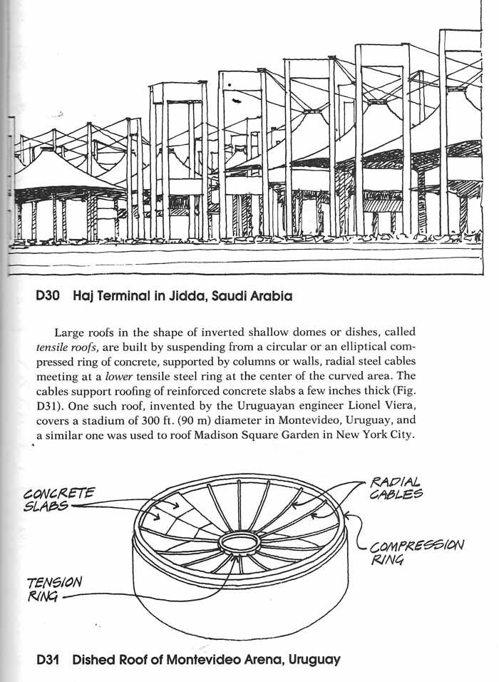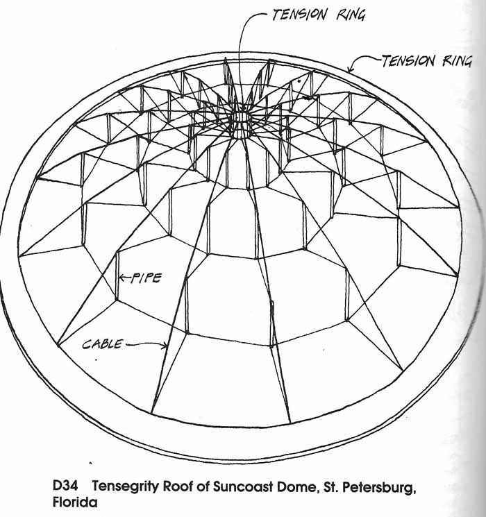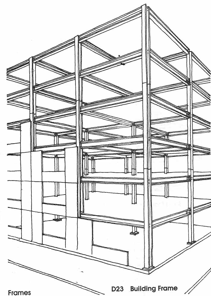 Frames are structural systems comprised of floor slabs supported by beams, beams sypported by columns, and columns supported by a foundation.![]() The construction of frames starts with the erection of columns ![]() ![]() ![]() Some frames have a vertical frame supporting vertical loads and a concrete core resisting lateral forces from wind and earthquake.( Levy and Salvadori) ![]() A tensegrity structures is comprised of columns providing strength in compression and cables providing strength in tension. ![]() ![]() Frames for certain structures, such as for rockets and airplanes, must be as light as possible: ![]() Model of Wright Flyer |