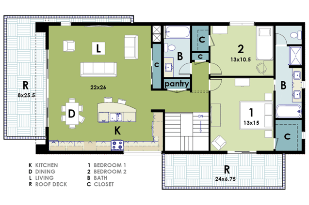 Below: Note "Great Room" concept: