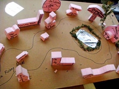 Activity: Construct a site model of a neighbood or development using foam blocks, etc.- draw street, house locations, compass. |