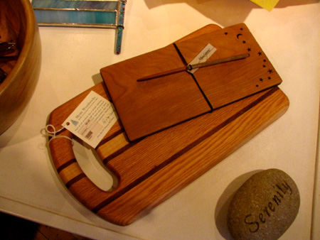 Cutting Boards- strips of 3/4" or 1" wood laminated together with polyurethane glue, then planed and sanded, finished with butcher-block oil. Use 1/4" or 1/2" strips of walnut or padauk for accent, against a background of oak or maple Cut a handhold- may line it with walnut as an accent