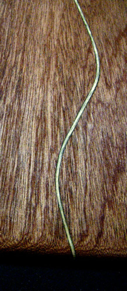 detail of student work- thin strip of dyed birch laminated into mahogany