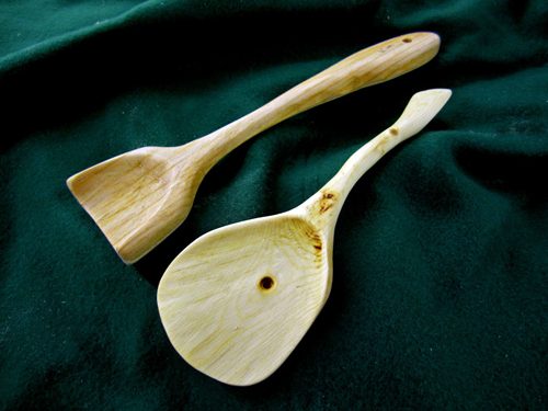 2 items of kitchenware, such as a spatula, spaghetti fork, ladle,